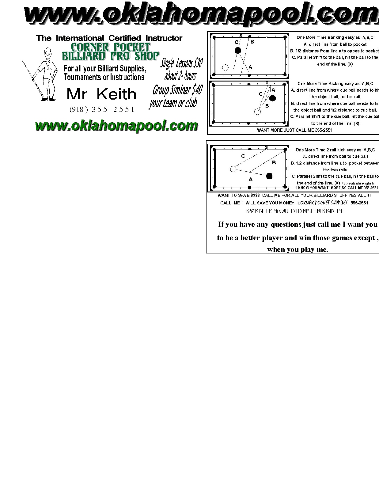 2. Billiards lesson 2 $35 two hours of shots to be made Rails, Cuts, Banks & Kicks